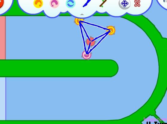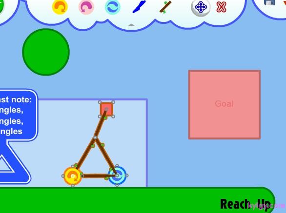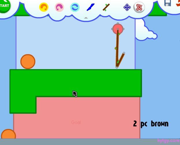 第二关 由于起步时会给木头一个斜线方向的力.所以会支撑木块一段时间,所以可以这样设计