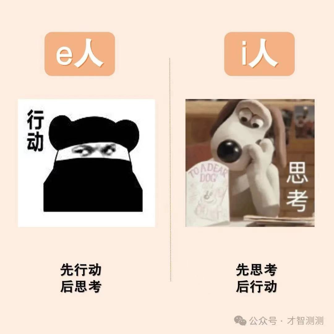 外倾(e)的人倾向于将注意力和精力投注在外部世界,如人、物和环境等; 而内倾(i)的人则更关注自我内部状况,如内心情感和思想。