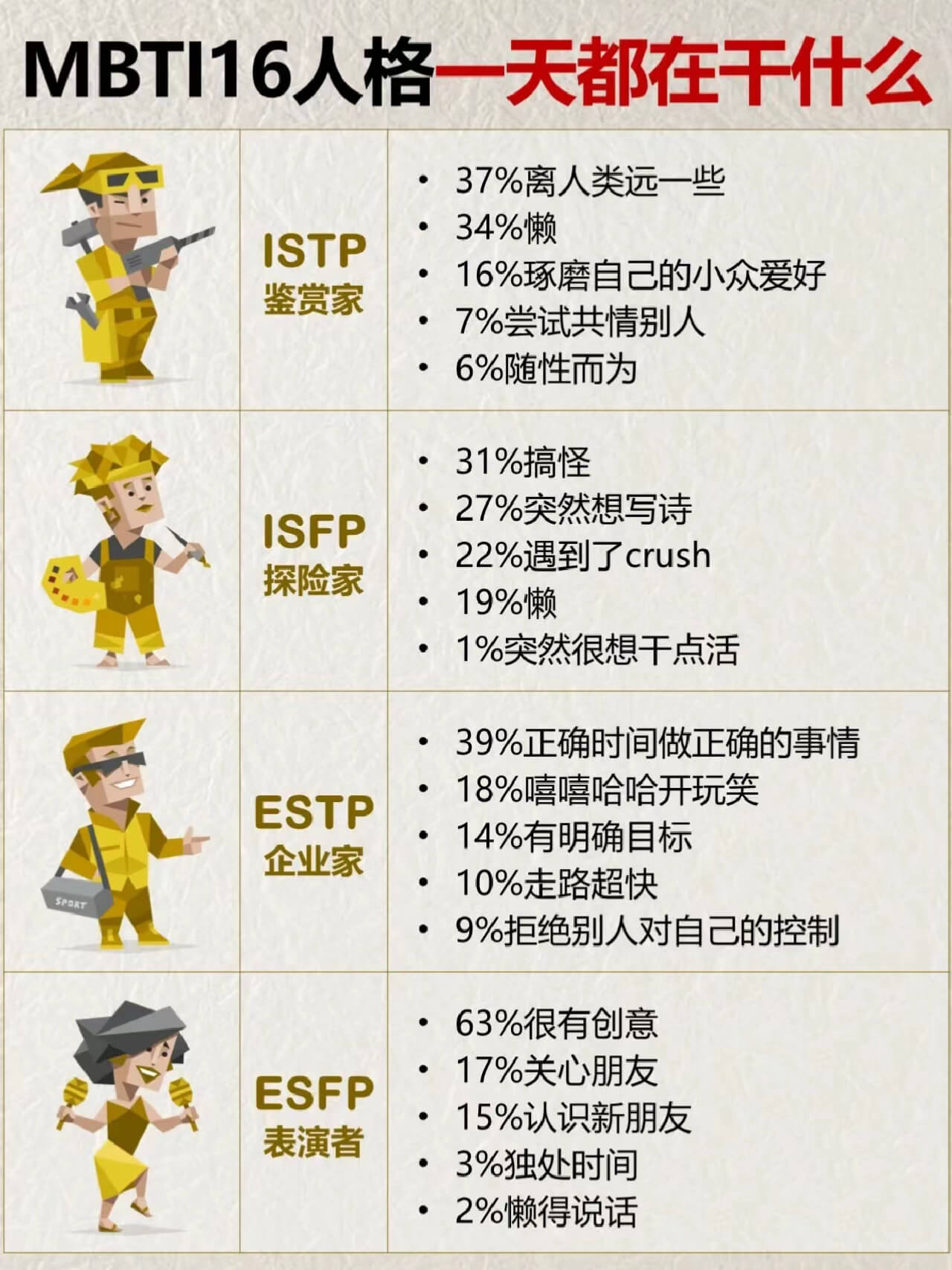 MBTI16型人格趣谈:不同人格类型一天都在干什么?