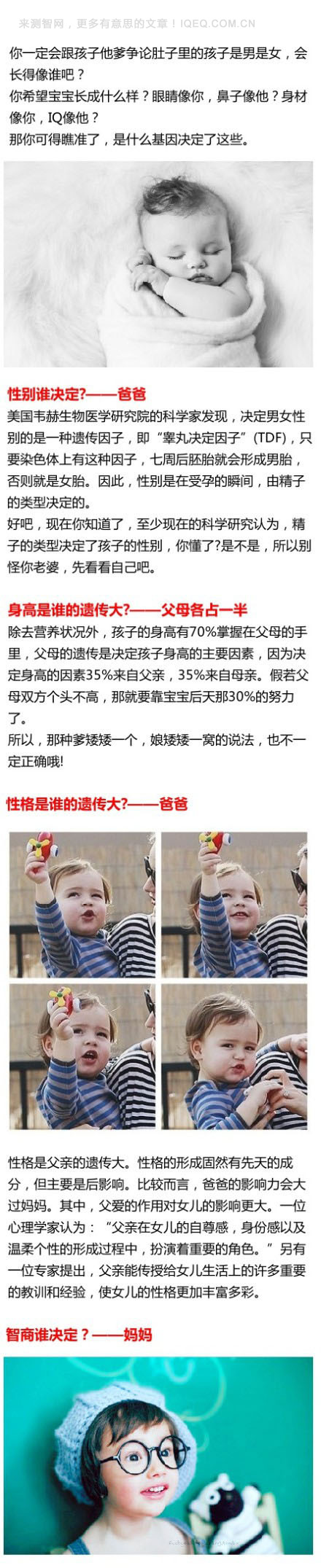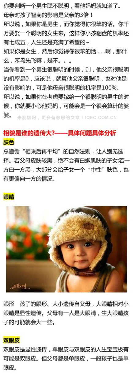 智商研究所:你的智商是谁决定的?你孩子的智商主要遗传谁?