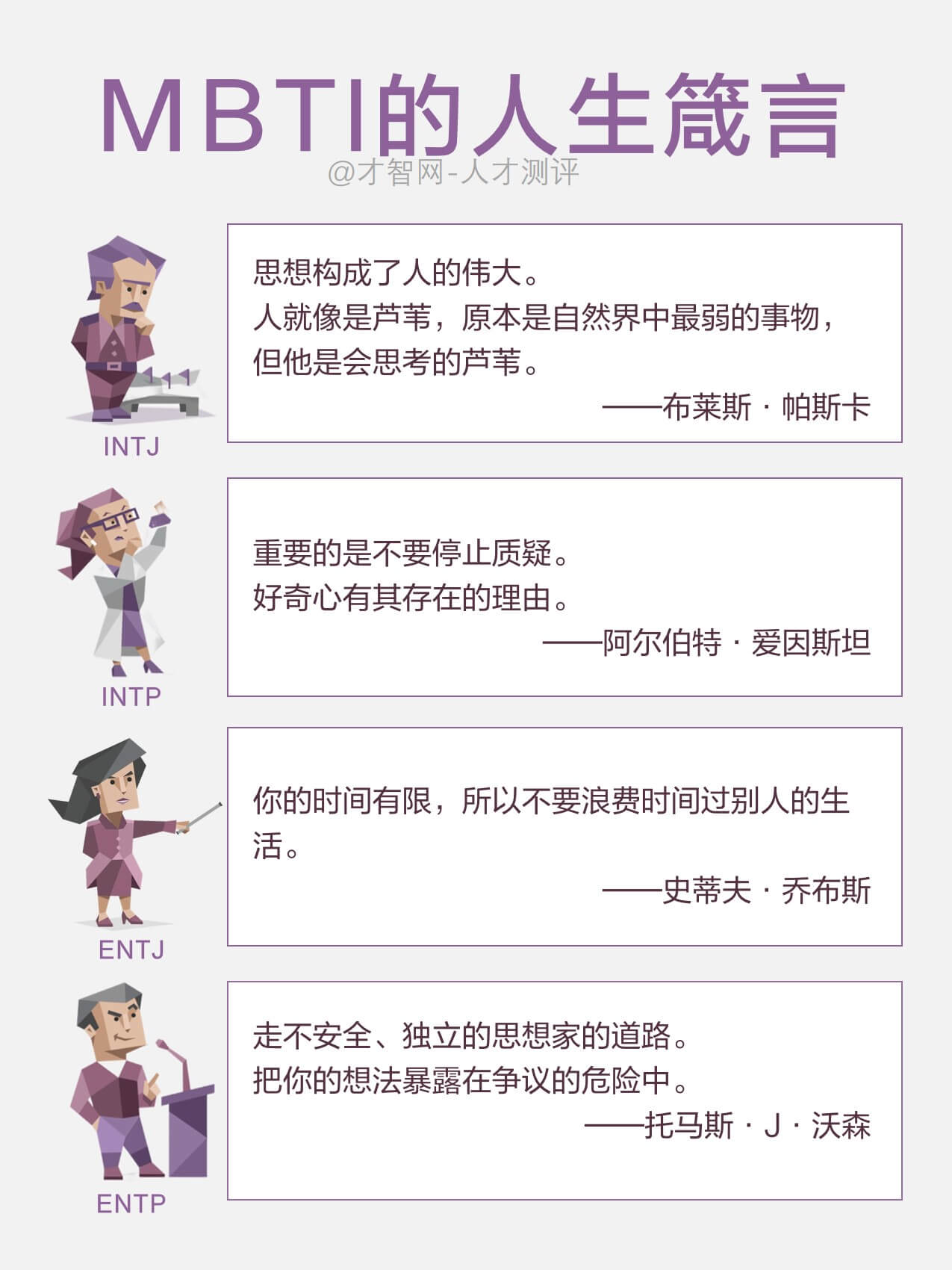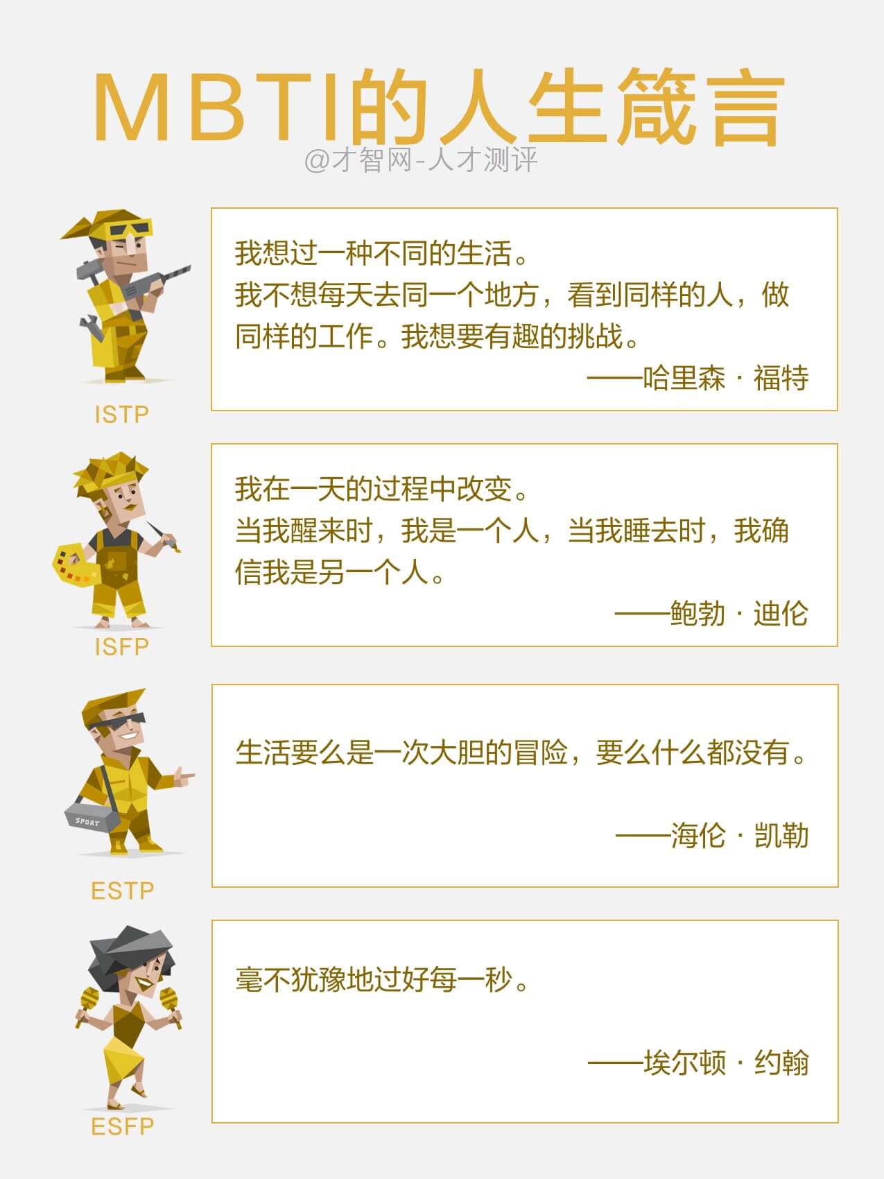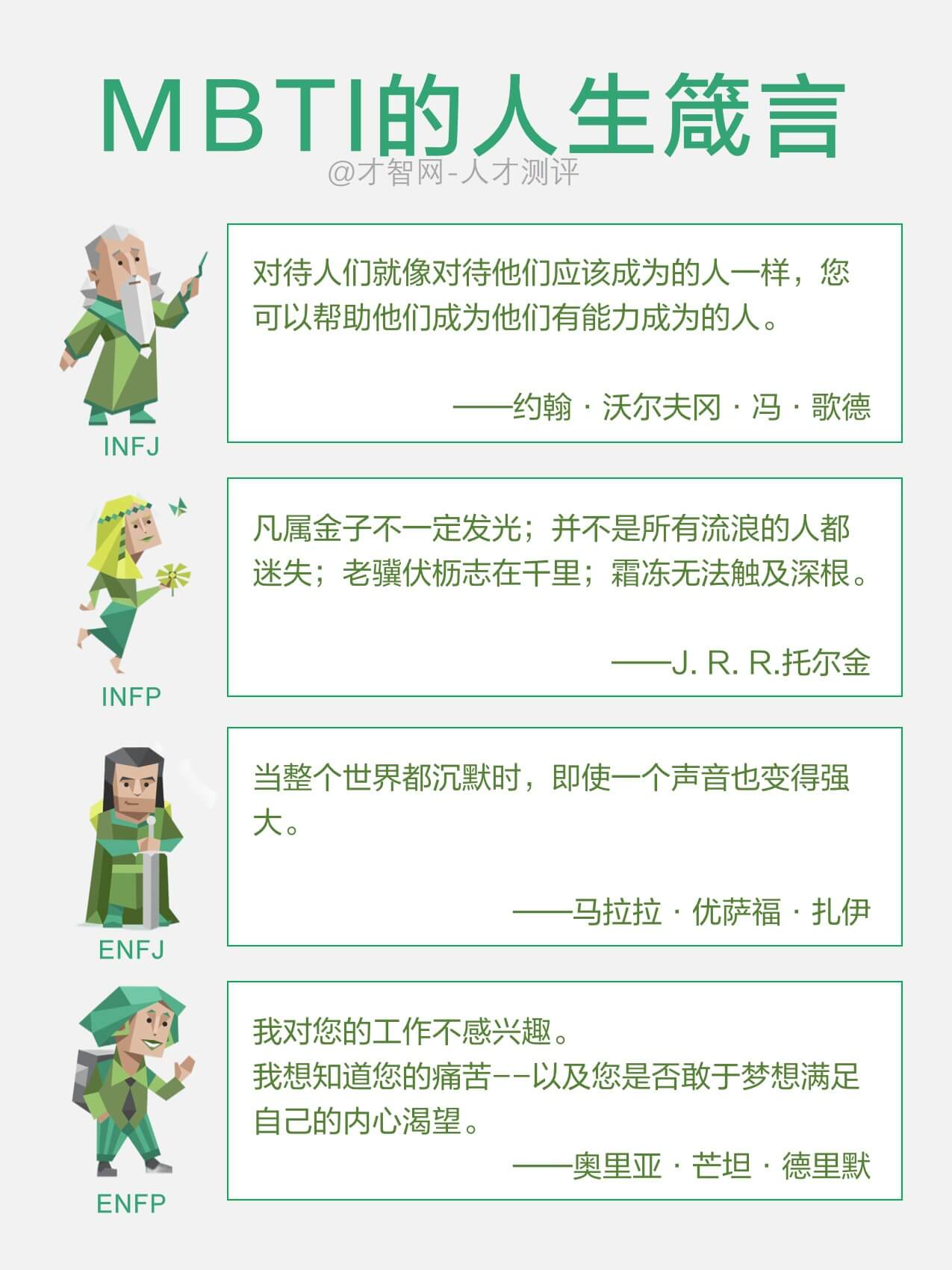 今天,带大家看看各16种MBTI类型的人生箴言: