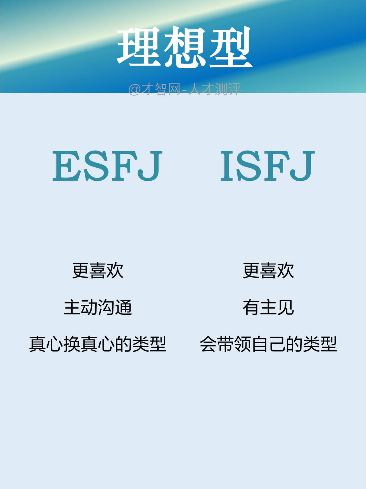 ISFJ:更喜欢有主见,会带领自己的类型。