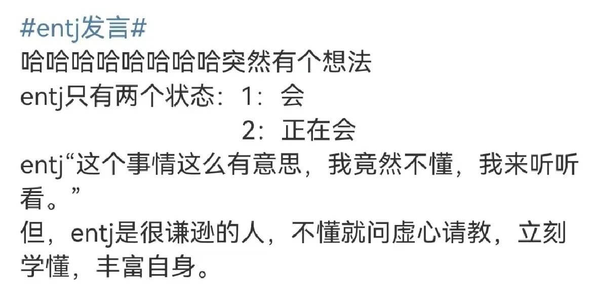下面分享有趣的ENTJ梗图,开心一整天~这是不是你呢?