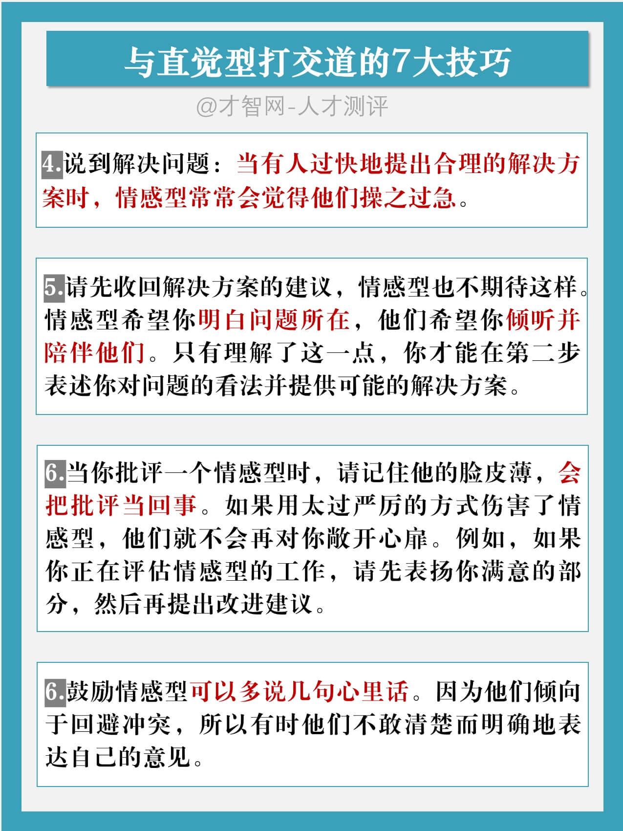 3.请尊重情感型的思考,他们的想法与理智型的想法一样合理。情感型只是更倾向于仔细观察人与人之间的关系,根据情况和问题的不同,这极有可能是解决问题的最佳方法。