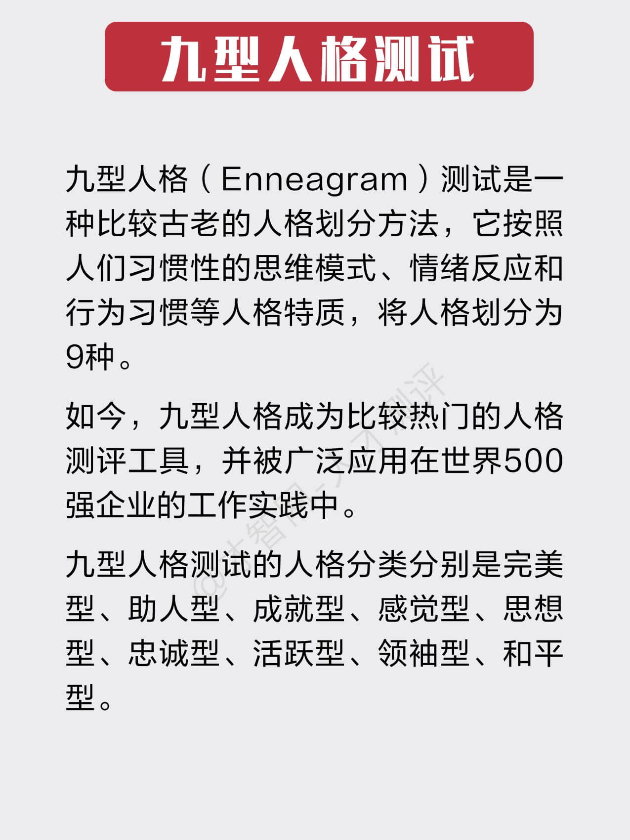 九型人格(Enneagram)测试是一种比较古老的人格划分方法,它按照人们习惯性的思维模式、情绪反应和行为习惯等人格特质,将人格划分为9种。