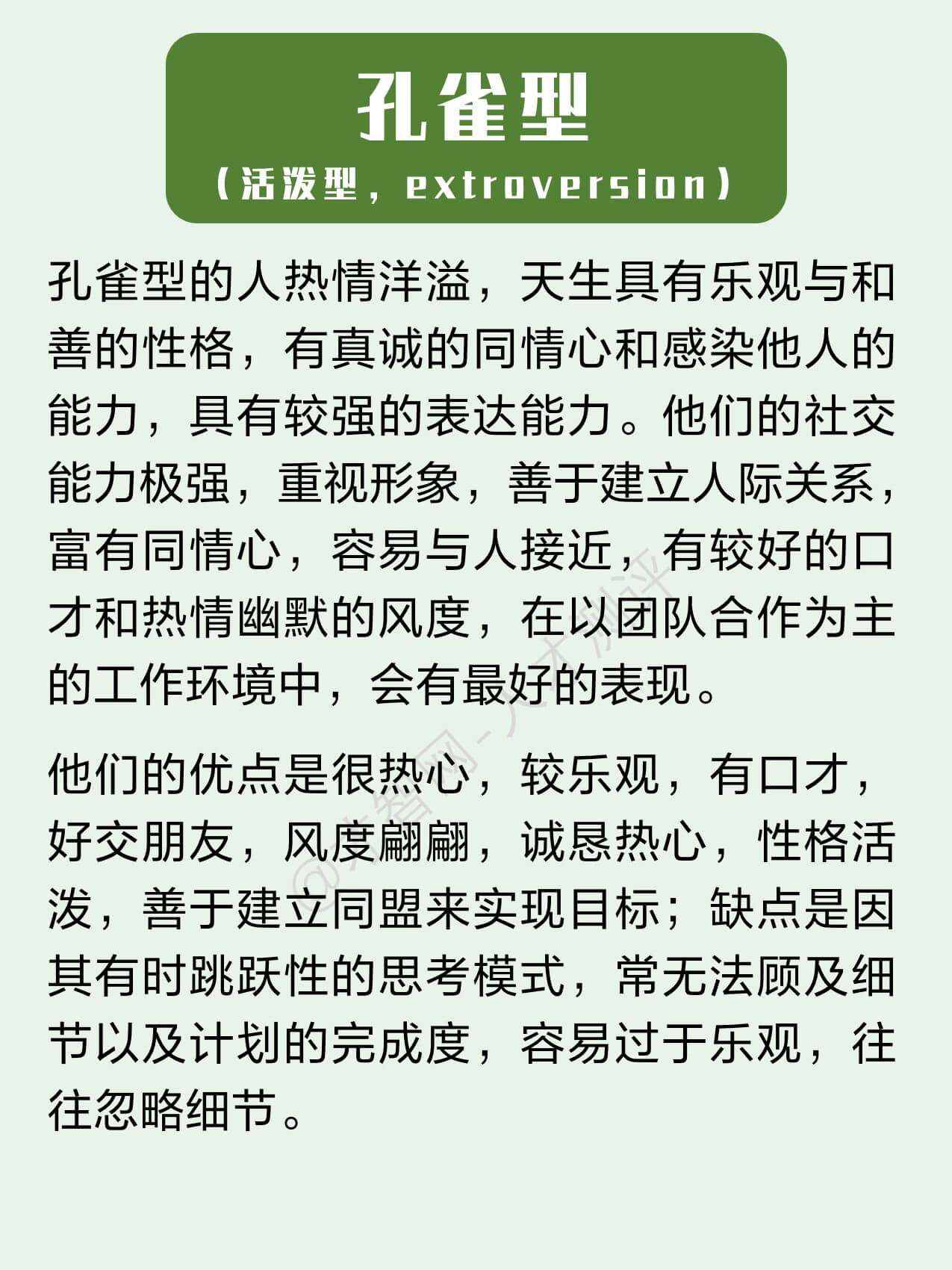2.孔雀型(活泼型,extroversion)