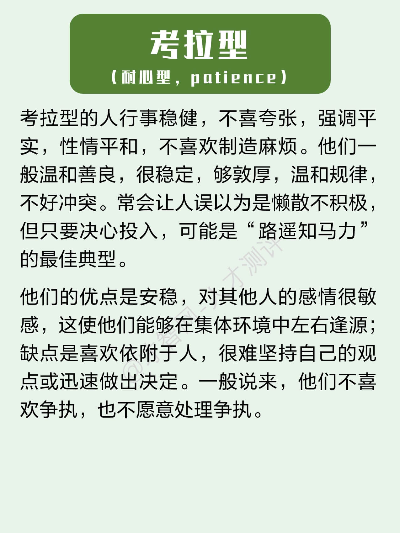 3.考拉型(耐心型,patience)