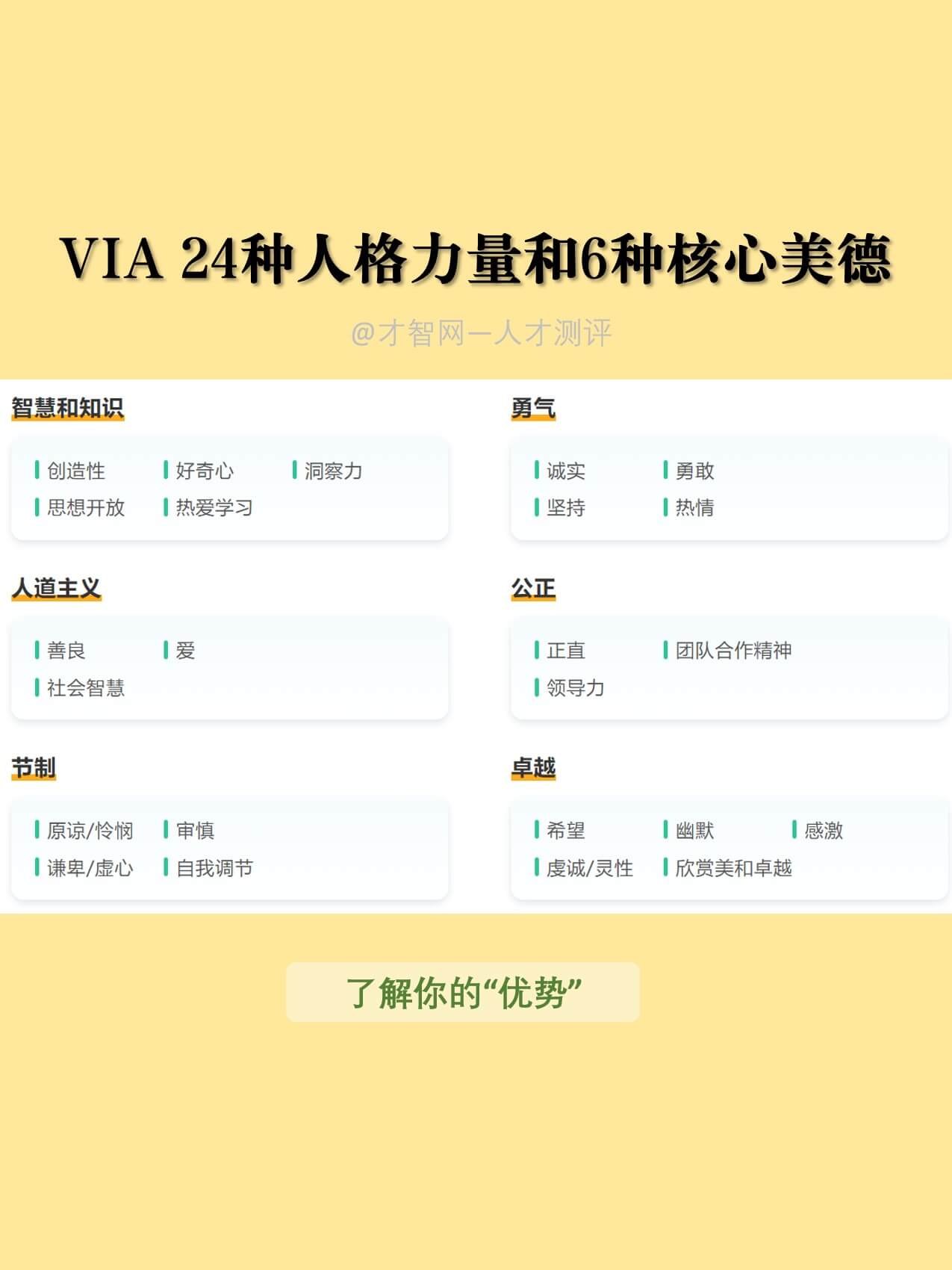 这里给大家推荐积极心理学经典的————VIA 24种人格力量问测试。